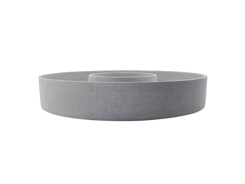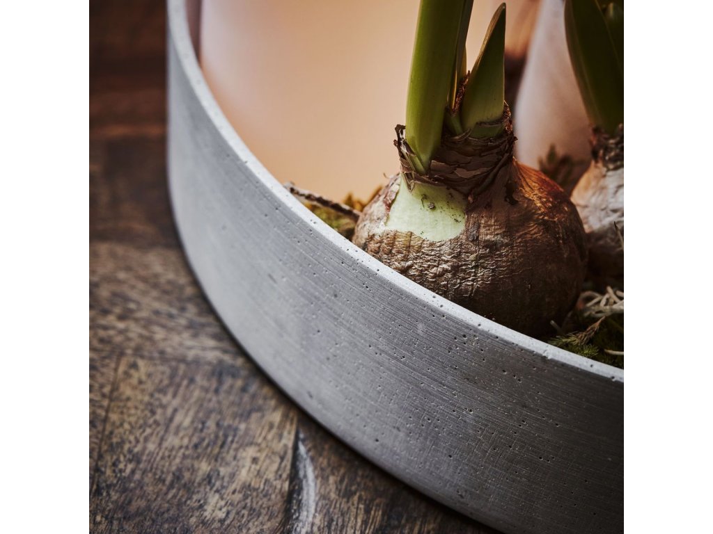 Svícen je vyroben z umělého kamene Polystone, který mu dodává cementový vzhled.