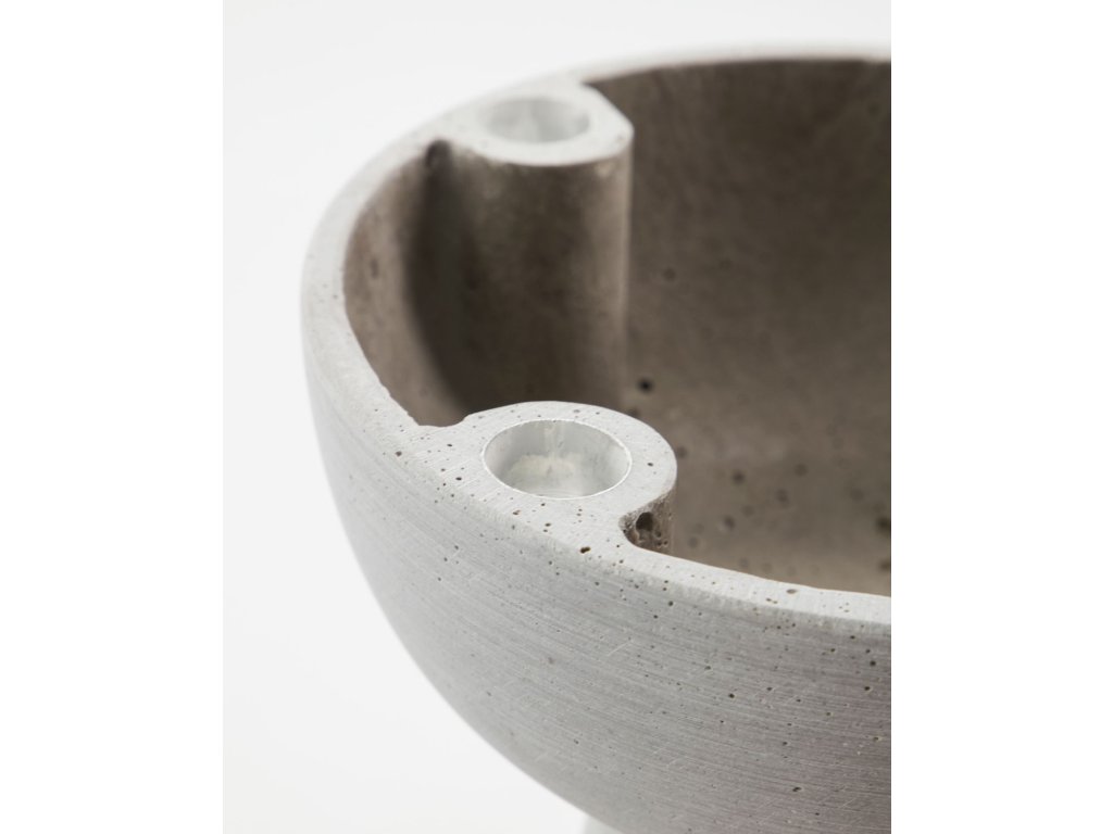 Svícen je vyroben z umělého kamene Polystone, který mu dodává cementový vzhled.
