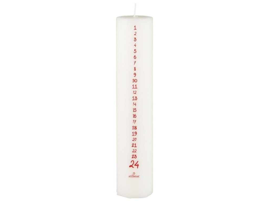 Adventní svíčka bílá s červenými čísly 1-24, výška 25 cm