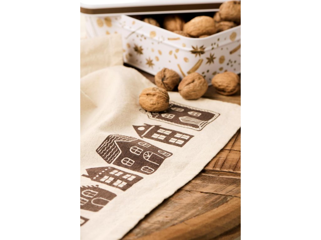 Bavlněná utěrka Pauline natural brown houses 50x70 cm