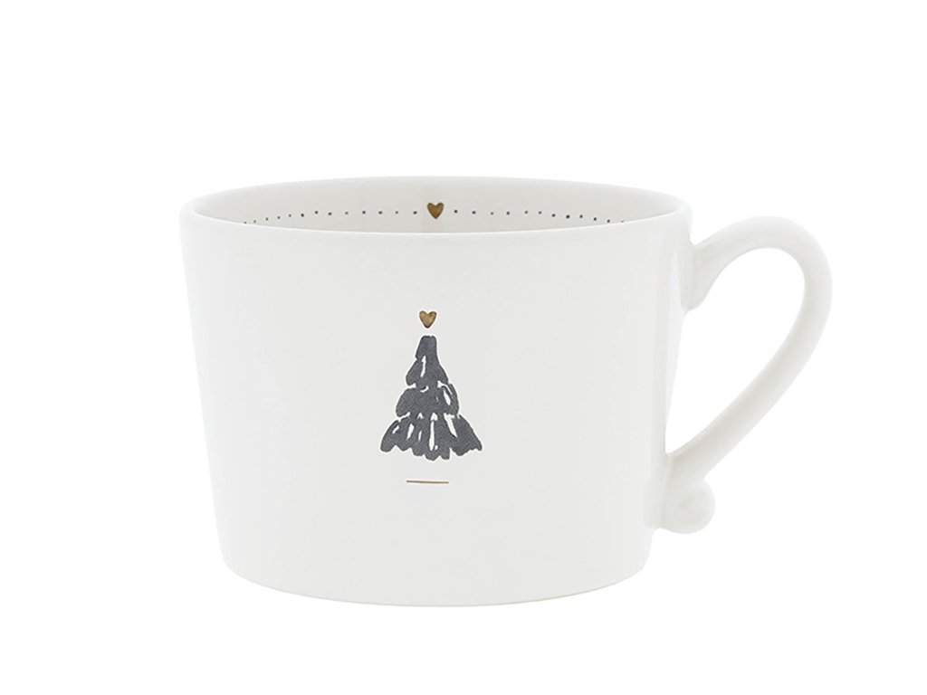 Vyroben z kvalitního porcelánu s lesklou bílou glazurou, zdobený jemným šedým vánočním stromkem a decentním srdíčkem – typickým prvkem této značky.
