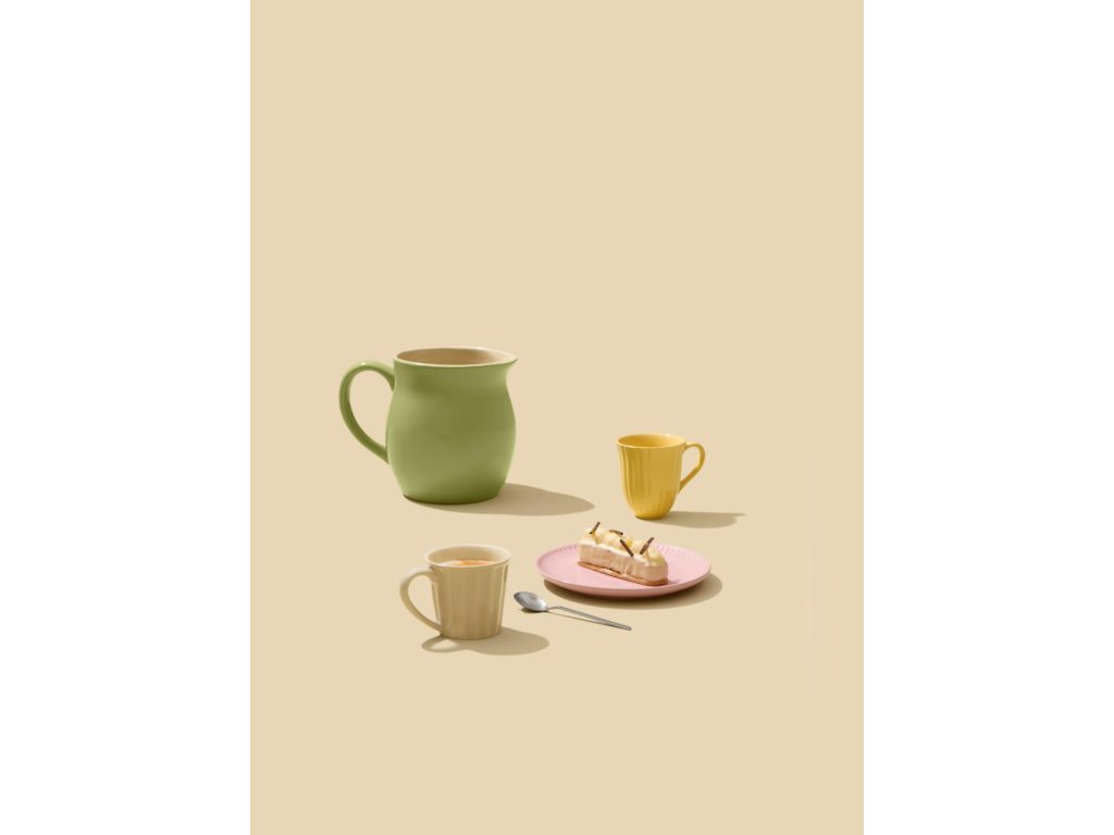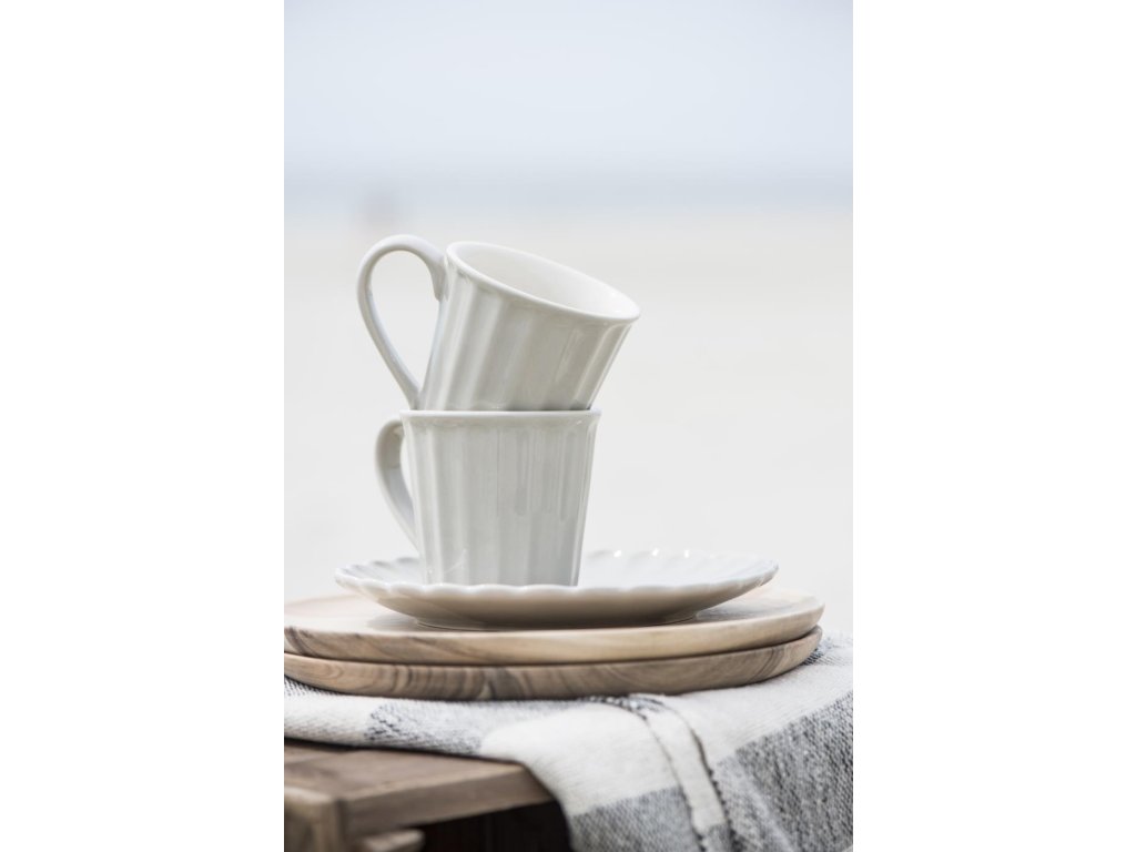 Objem 200 ml je ideální pro espresso, cappuccino nebo menší latté, ale hrnek se hodí i na čaj či horkou čokoládu. Díky typickému vroubkování a oblému oušku se pohodlně drží a krásně doplňuje ostatní produkty z kolekce Mynte Latte – misky, talíře i džbány.