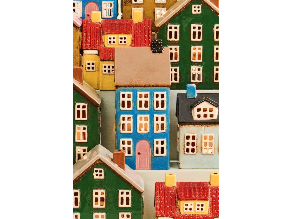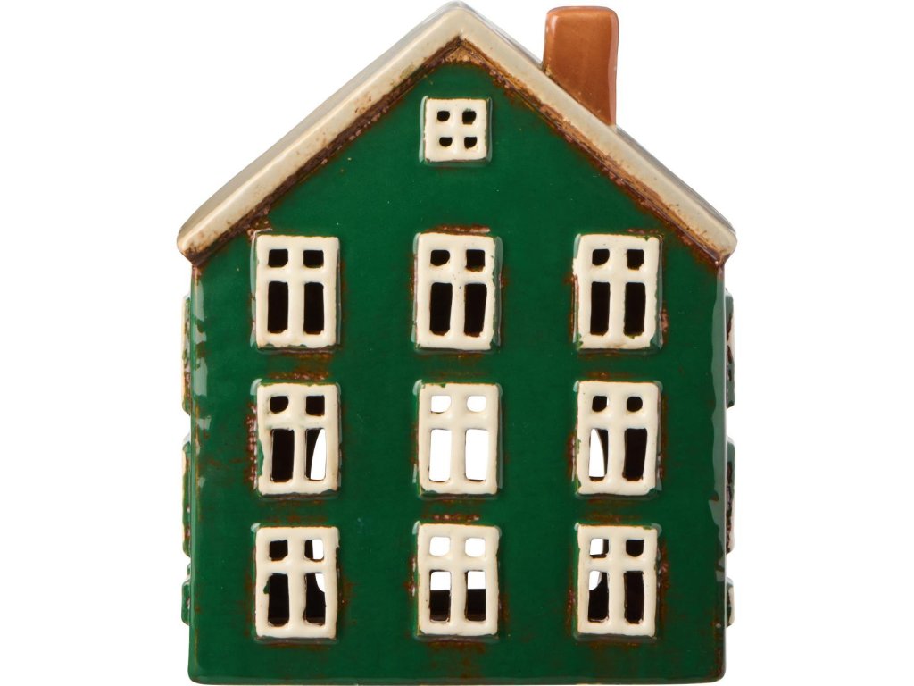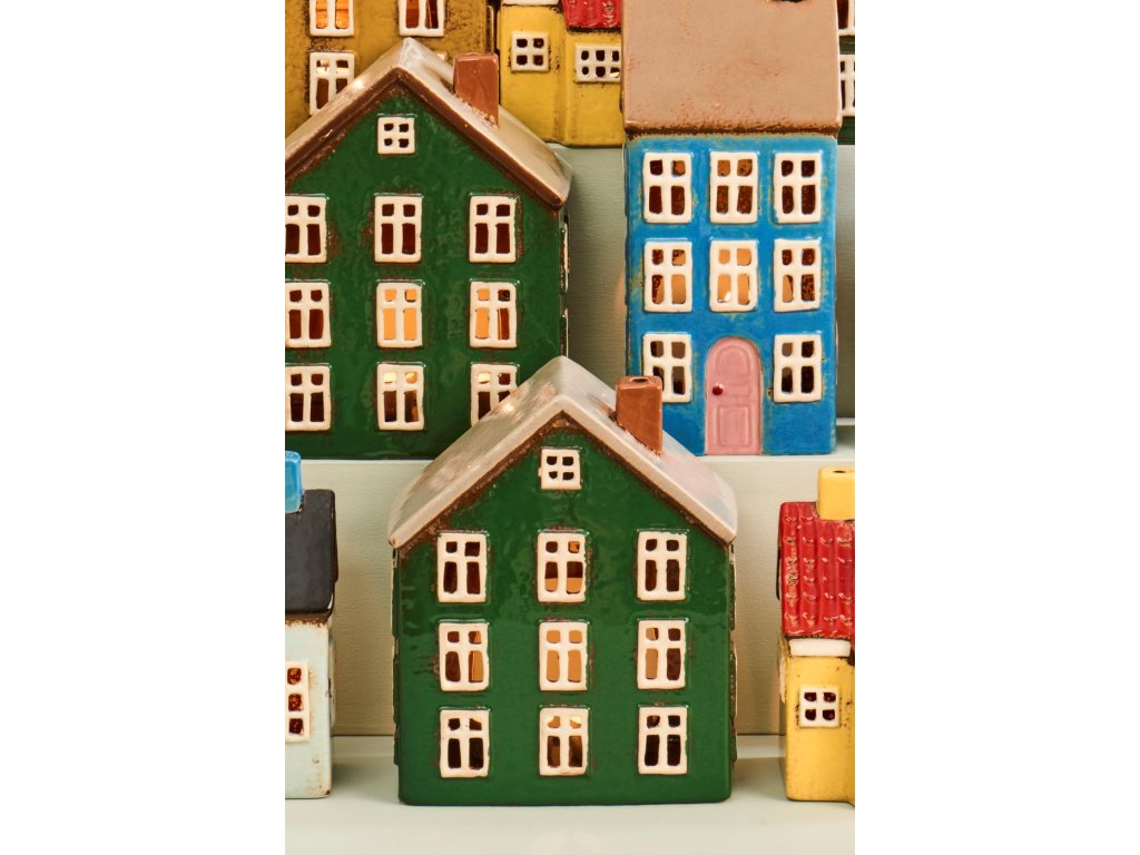 Keramický svícen domeček Nyhavn green/yellow door on side