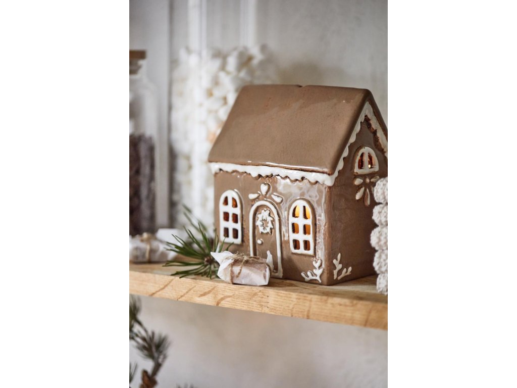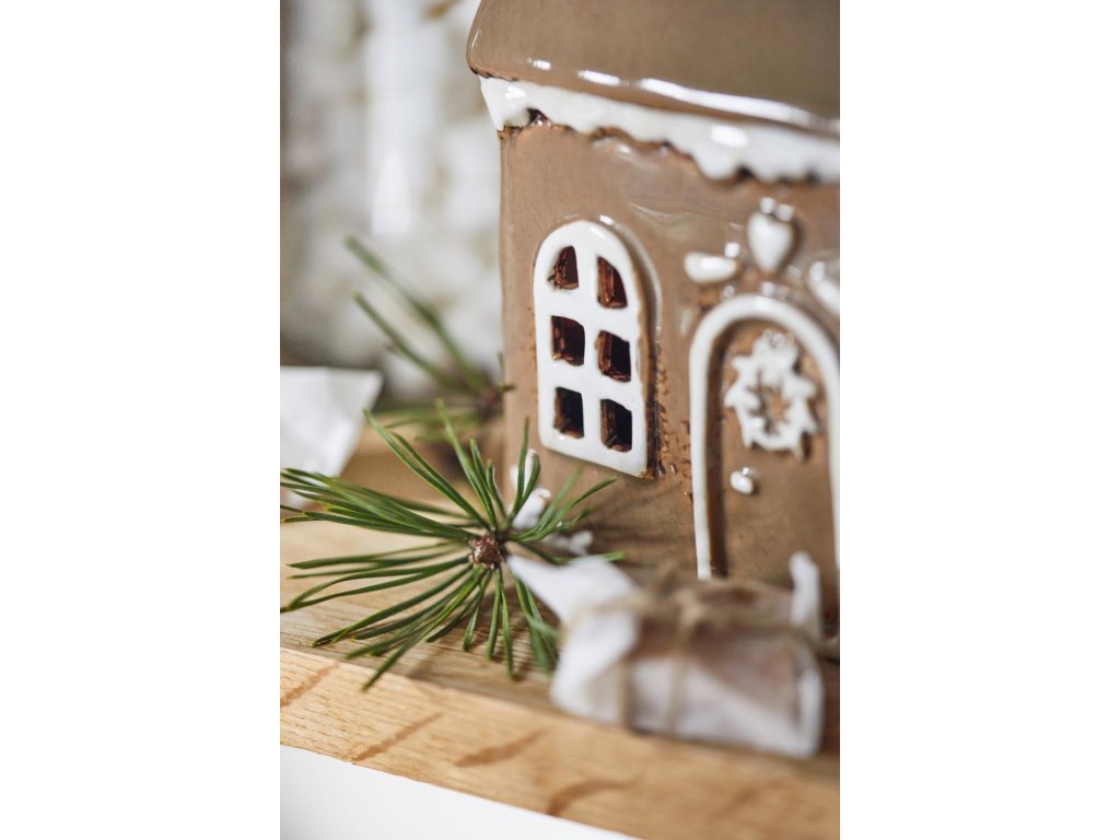 Vneste do svého interiéru hřejivý vánoční klid s keramickým svícnem Stillenat Gingerbread Door Wreath od dánské značky IB Laursen. Tento detailně zpracovaný domeček z kolekce Stillenat (v překladu „Tichá noc“) připomíná malý perníkový domeček s věncem na dveřích a drobnými okny, skrze která krásně prosvítá světlo svíčky. Každý kousek je jedinečný, ručně glazovaný a vyzařuje kouzlo severských Vánoc.