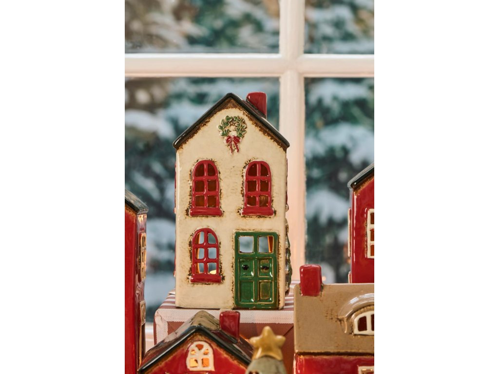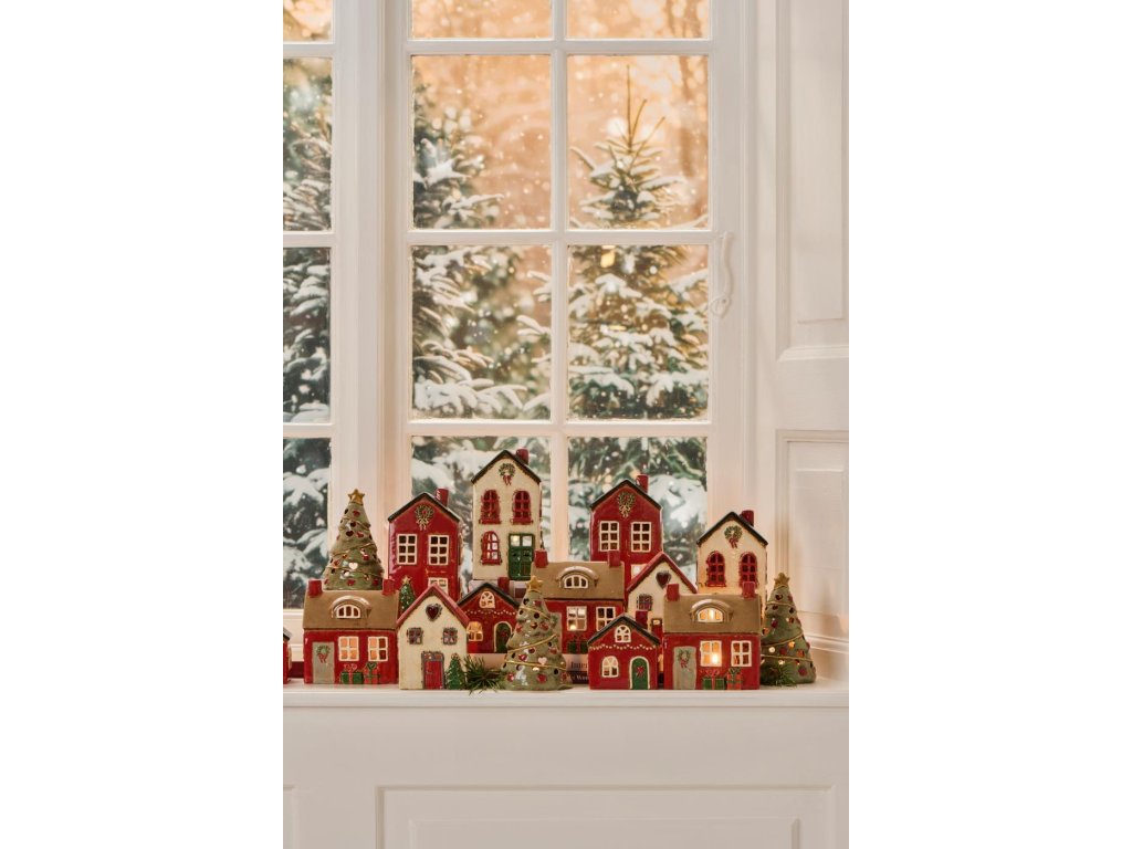 Když do něj vložíte čajovou nebo LED svíčku, světlo krásně prosvítí okny i otvory ve střeše a promění váš domov v klidné a útulné vánoční útočiště. Každý kus je ručně glazovaný, a proto jedinečný. Domeček působí kouzelně samostatně i v kombinaci s dalšími svícny z kolekce Stillenat Gingerbread.