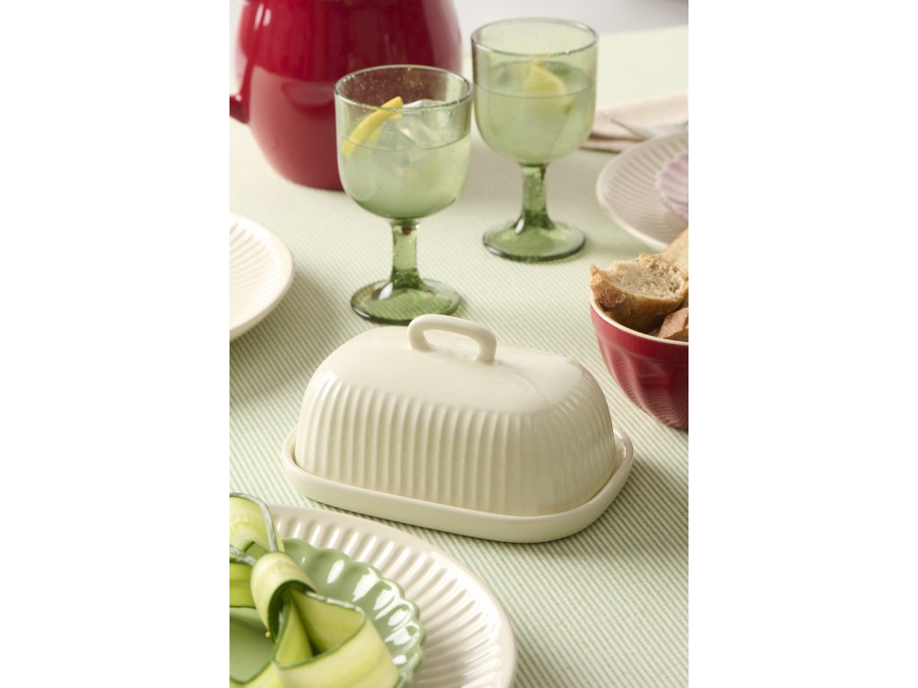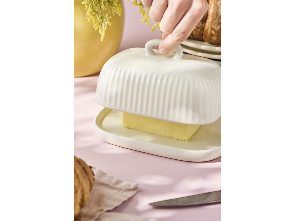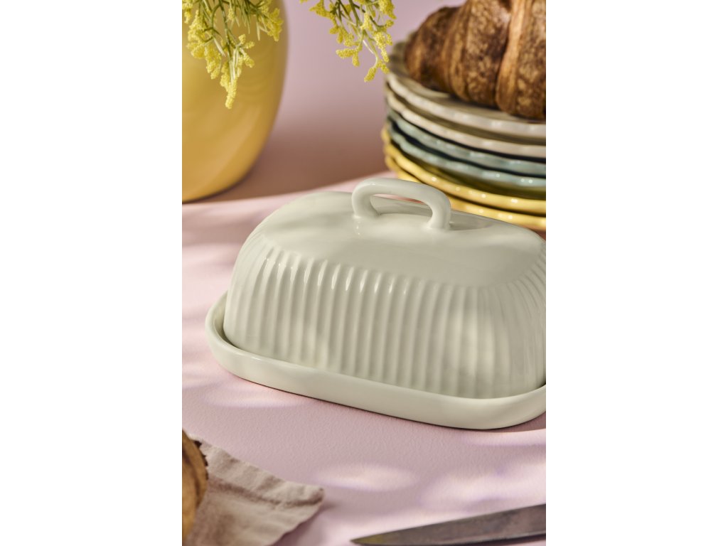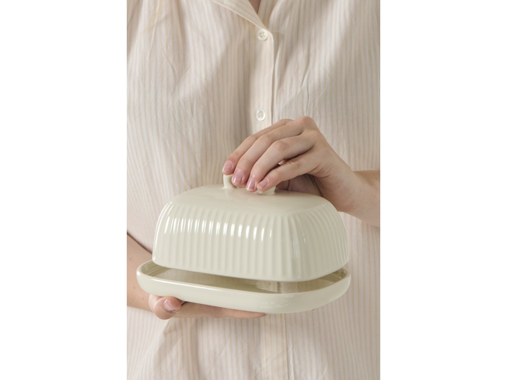 Vneste do své kuchyně špetku severské estetiky s máslenkou z oblíbené kolekce Mynte od dánské značky IB Laursen. Tato keramická máslenka v jemné barvě Butter Cream zaujme klasickým tvarem a vroubkovaným designem, který je pro řadu Mynte typický. Díky odolnému materiálu se hodí pro každodenní používání a snadno se kombinuje s ostatními produkty z kolekce. Je ideální nejen pro uchování másla, ale i jako stylový doplněk při servírování snídaně či brunchu.