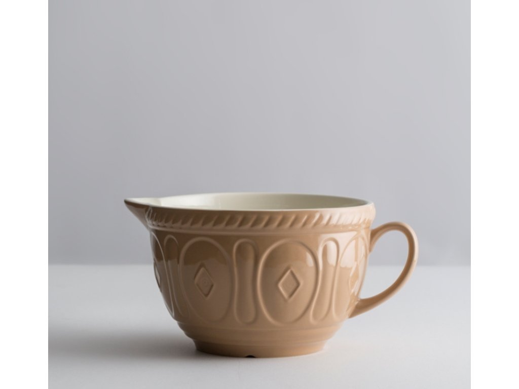 Mísa je vyrobena z pevné kameniny (earthenware), která odolá každodennímu používání a zůstává stabilní i při míchání. Praktická vylévací hubička usnadňuje přelévání těsta, krémů či omáček. Typické vroubkování po obvodu pomáhá při uchopení a zároveň odkazuje na originální design, který značka Mason Cash používá už více než století.
