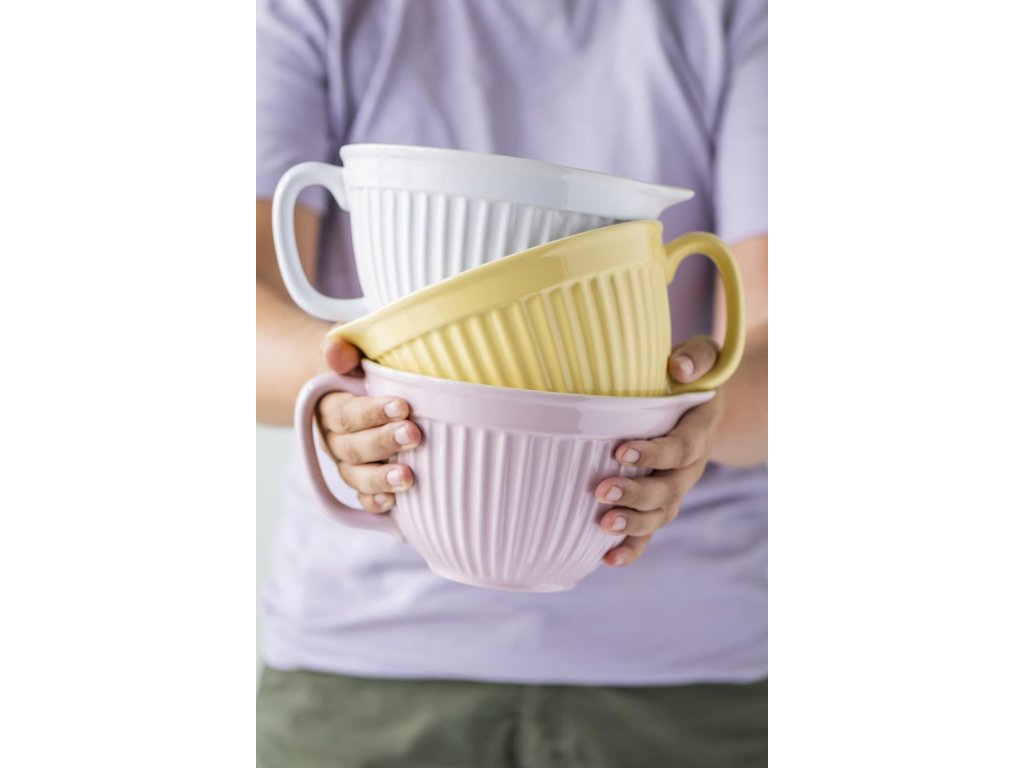S objemem 1,3 l je ideální pro míchání těsta, šlehání krémů, přípravu salátů nebo servírování, ale díky svému elegantnímu vzhledu poslouží i jako krásný dekorativní prvek. Robustní ucho umožňuje pohodlné držení a vylévací zobáček zase snadné nalévání.