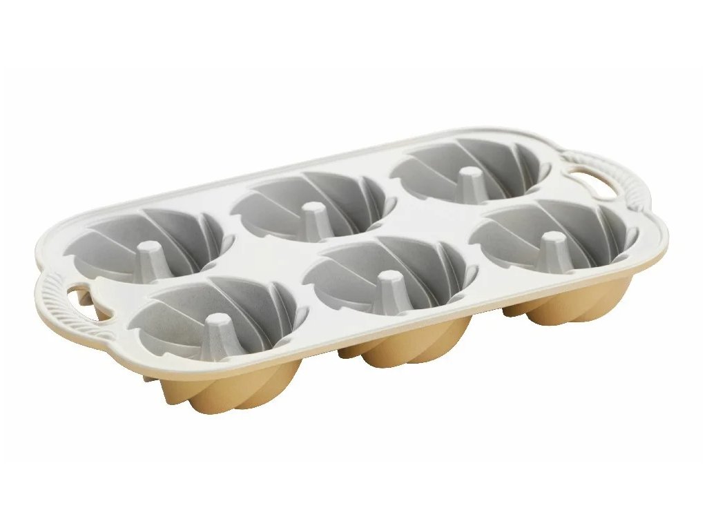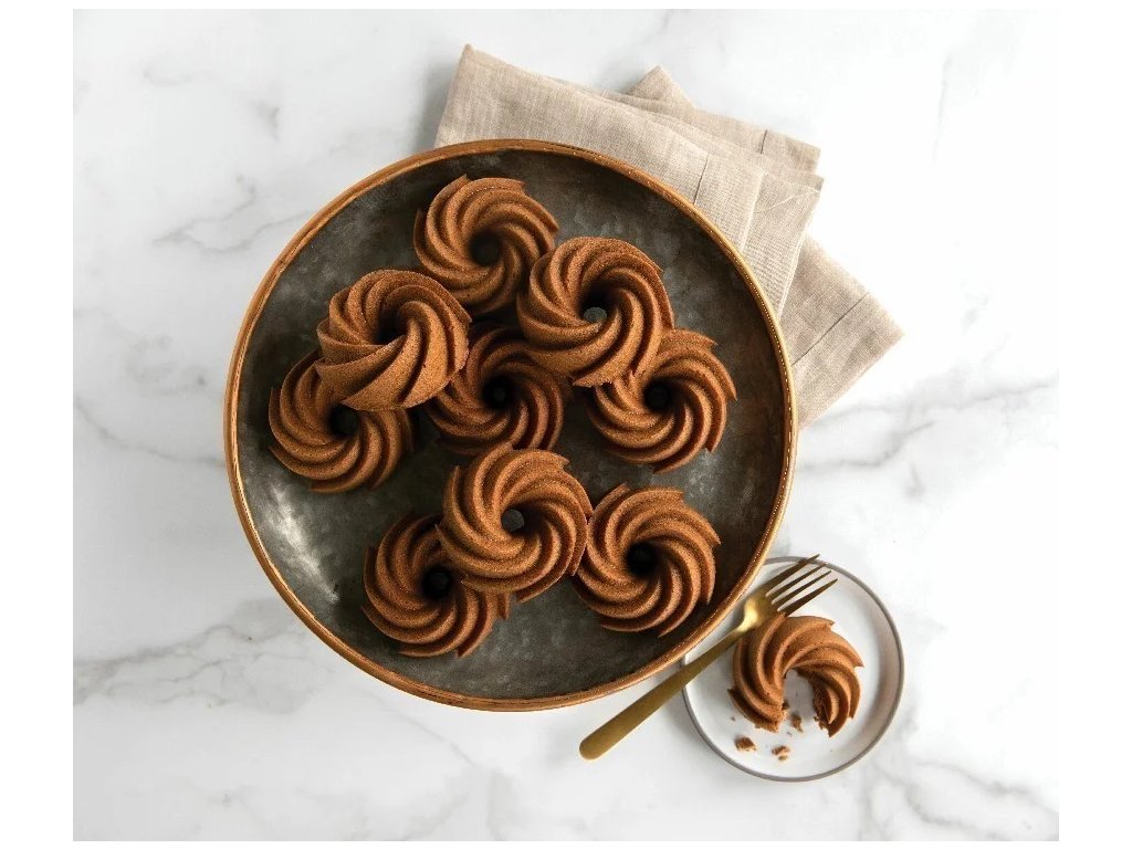 Prémiová forma Nordic Ware Mini Heritage Bundtlette Pan promění vaše pečení v umění. Šest drobných forem s legendárním spirálovým designem Heritage vytváří miniaturní bábovky, které vypadají stejně působivě jako jejich velká verze.