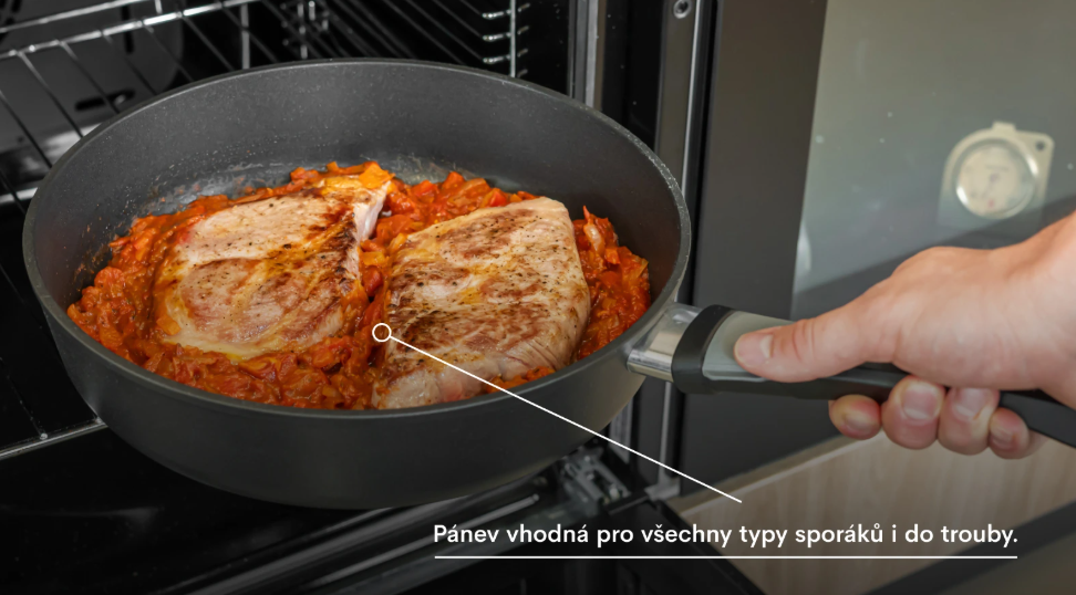 Pánev Remoska® Luna je vhodná i na zapékání v troubě. S jednou pánví tak hravě zvládnete vaření, restování, ale i zapékání v troubě až do 220 °C (bez držadla).